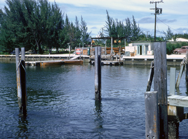The vacant lots in the background with Australian pine trees is where the present day parking lot and third dock are located.