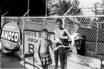 This is the earliest photograph I have of Roy's Boats after Dad and Ed Roehrich purchased Roy's Boats from Ralph Warner. Dad is standing in the doorway of the office.